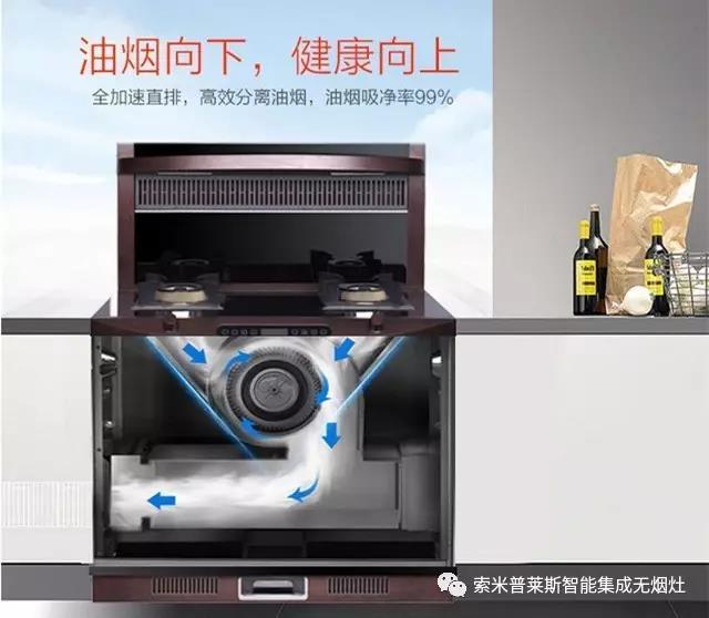 索米普莱斯集成灶主要是相对与传统的三件套(即抽油烟机,灶具,消毒柜)来说的,集成灶油烟不经过人的脸部,如果排除质量以及安装问题,油烟吸除率基本都达到99%以上,节省空间,不会碰头,不会滴油,漏油,但不同种类的集成灶产品在设计的科学合理人性化存在很大差异。
