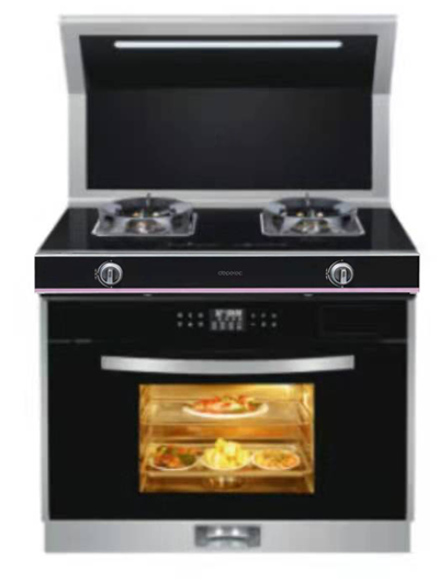 AI智能影视蒸烤消一体、LED照明、电加热清洗、头部加热置物台、内腔冷凝玻璃、烟机联动、整机模块化、上进风燃烧系统、发光旋钮、内腔一体拉伸蒸烤消